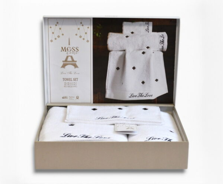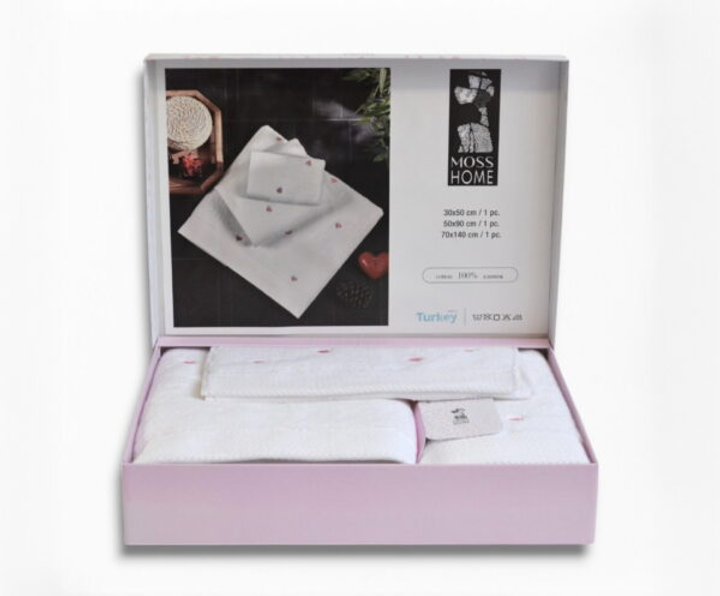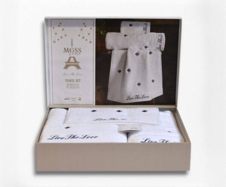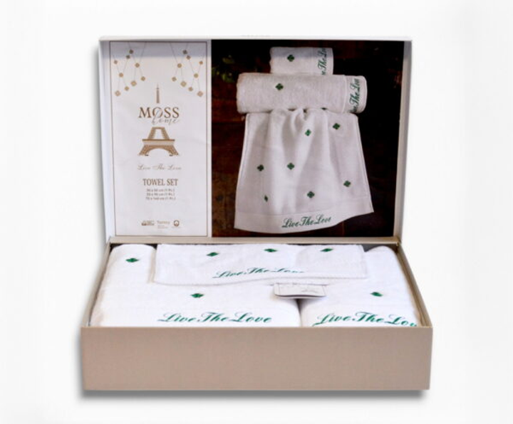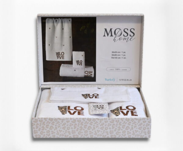 Подарунковий набір рушників Moss з вишивкою – 3 шт (30x50, 50x90, 70x140 см) – Щільність 500 г/м Love 3