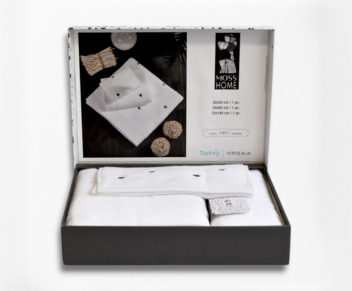 Подарунковий набір рушників Moss з вишивкою – 3 шт (30x50, 50x90, 70x140 см) – Щільність 500 г/м Love 2