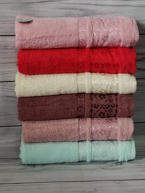 Набір рушників махрових Mame 3D Ramaska 50х90см 6 шт Бежевий-блакитний-пудра-рожевий-зелений-молочний