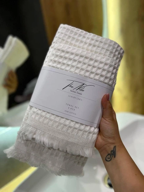 Набір вафельних рушників luppura 2 шт (50х90 см + 70х140 см) Молочний (Д-turkish-polotence-001)