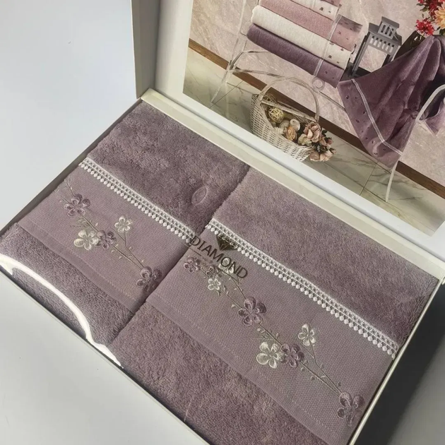 Подарунковий набір рушників Diamond Sandra, LILAK 50x90 см + 70x140 см Ліловий