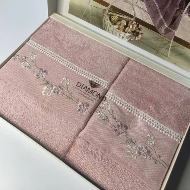 Подарунковий набір рушників Diamond Sandra, Pudra 50x90 см + 70x140 см Пудра