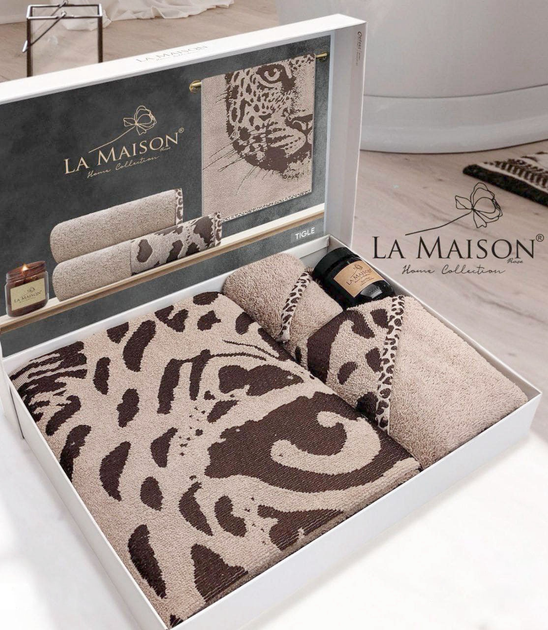 Подарунковий набір рушників La Maison 3 шт з свічкою Tigle Kahve