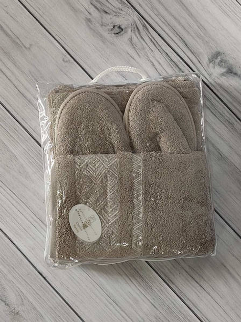 Набір для сауни Pupilla: рушник-спідниця, рушник, капці, натуральна бавовна, капучино, розміри 44-48