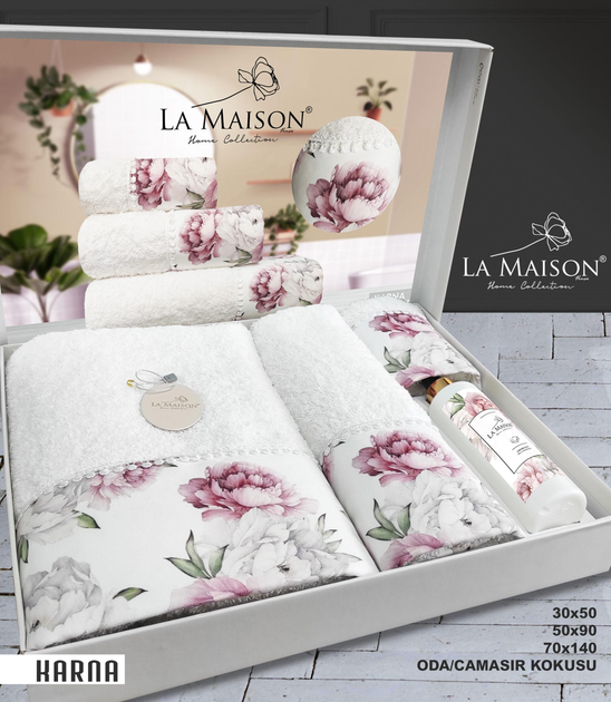 Подарунковий набір рушників 30х50см+50х90см+70х140см La Maison 000301587, 3 шт, бавовна 100, білий