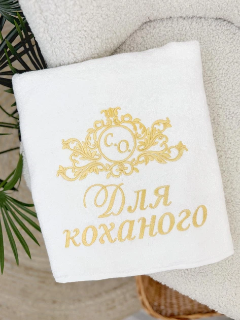 Банний рушник Family Tradition двостороння махра з вишивкою 140х70 см молочно-білий Для коханого
