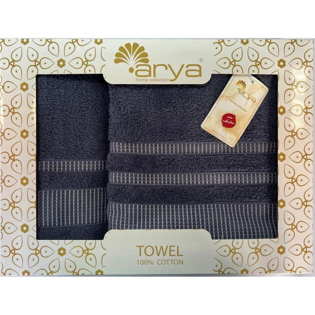 Набір рушників Arya. Жаккард Dophne темно-сірий-50х90-70х140 (2 шт)