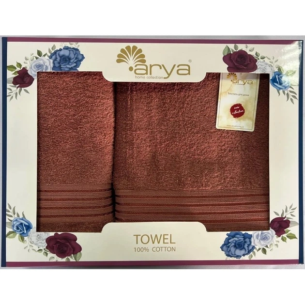 Набір рушників Arya. Жаккард Hera коричневий-50х90-70х140 (2 шт)
