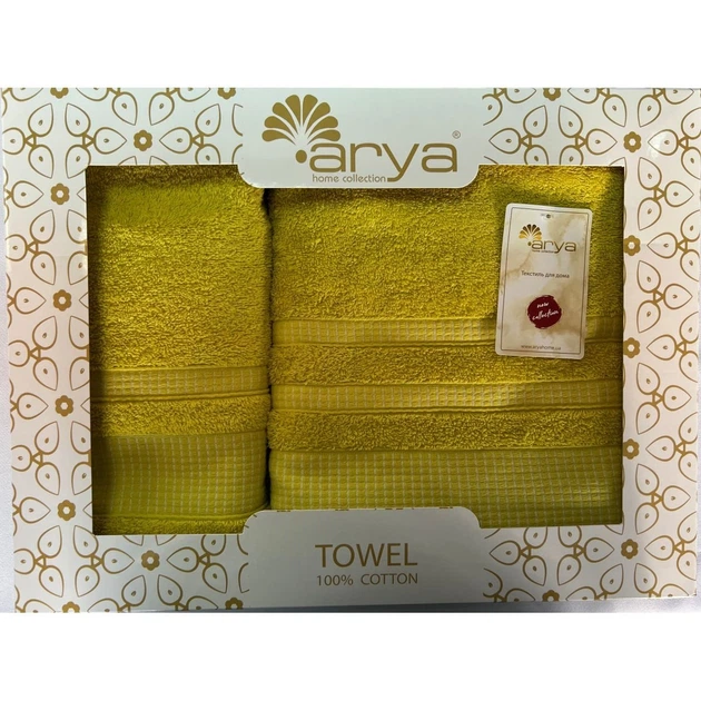 Набір рушників Arya. Жаккард Hera гірчичний-50х90-70х140 (2 шт)