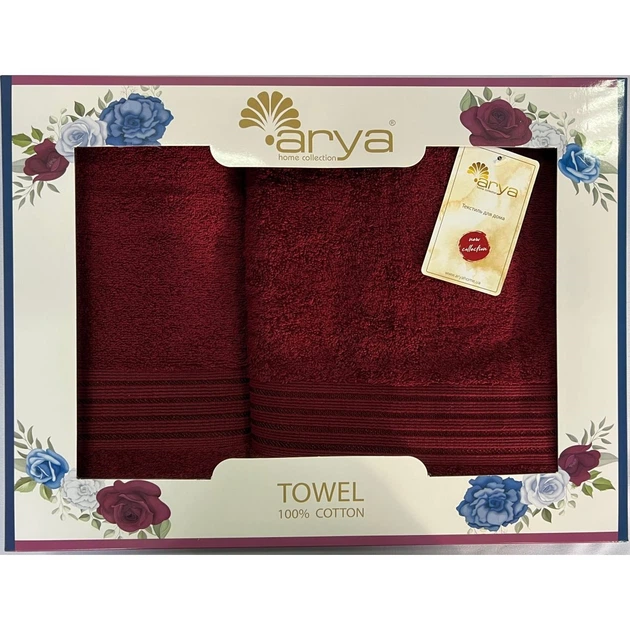 Набір рушників Arya. Жаккард Dophne бордовий-50х90-70х140 (2 шт)