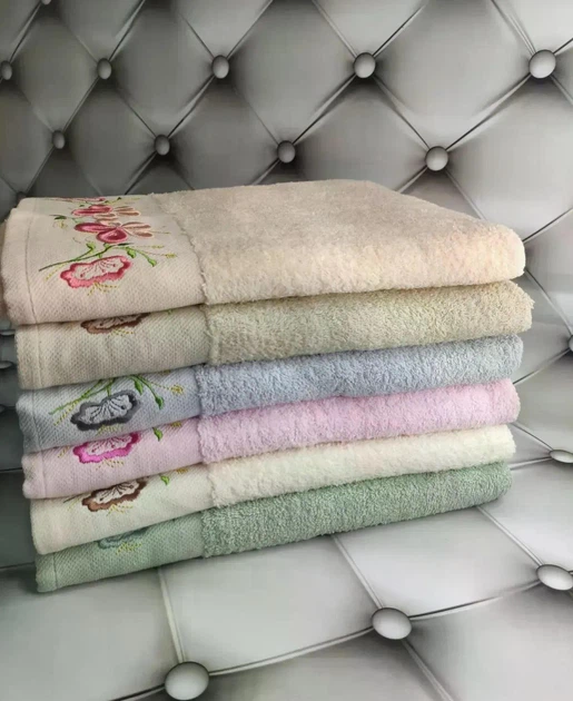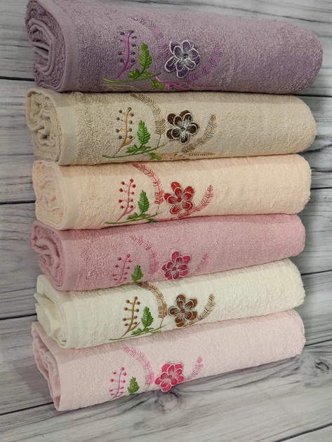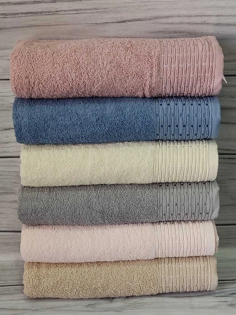 Набор полотенец махровых Mame 3D Ramaska 70х140см 6 шт Бежевий-блакитний-пудра-рожевий-зелений-молочний