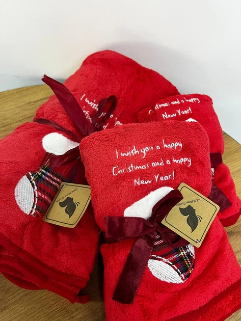 Набір новорічних рушників мікрофібра 3 шт. (баня, лице, руки) червоний
