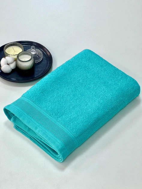 Махровий рушник з бордюром 100х150 см 360 г/м2 бірюзовий Узбекистан 100 бавовна