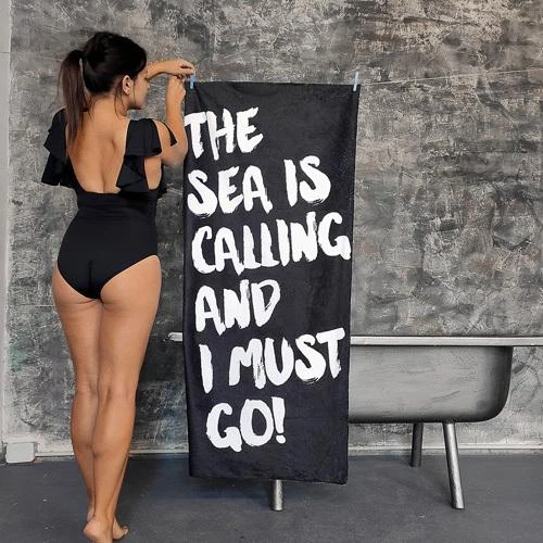 Рушник пляжний великий з принтом The sea is calling and I must go!, 150х70 см