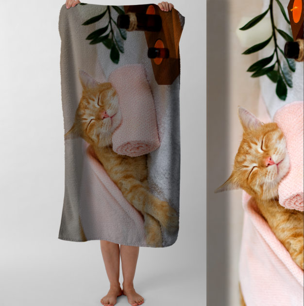 Рушник Білий кіт кішка відпочиває в спа салоні сплячий кіт банний пляжний 70х150 см