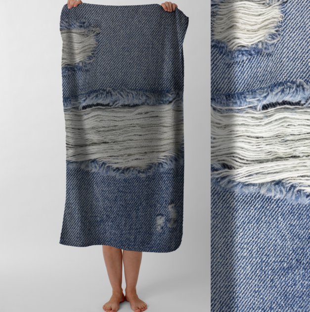 Рушник Джинс джинсова тканина текстура рвана потерта банний пляжний 70х150 см