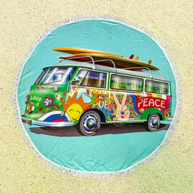 Пляжний рушник-покривало Мікроавтобус 150 см з бахромою - яскрава підстилка з мікрофібри для відпочинку