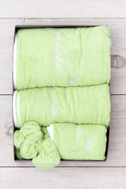Подарунковий набір: рушники з мікрофібри (банний, лицевий) та аксесуари для волосся Носи своє Універсальний Салатовий (p-188