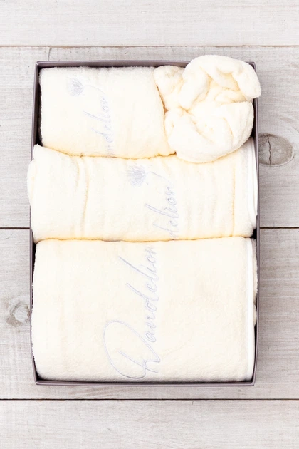 Подарунковий набір: рушники з мікрофібри (банний, лицевий) та аксесуари для волосся Носи своє Універсальний Молочний (p-1881