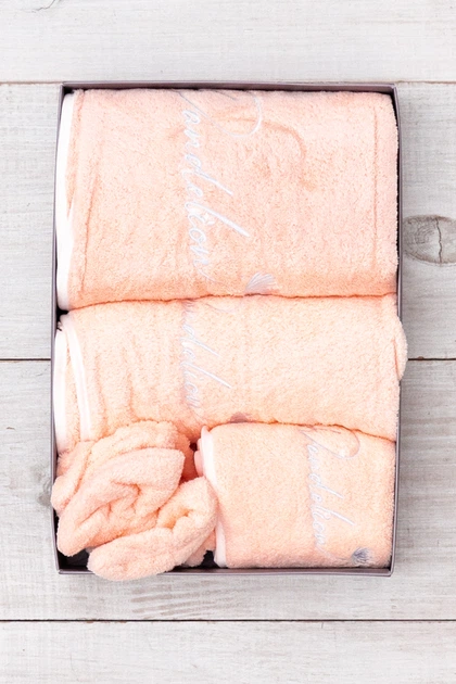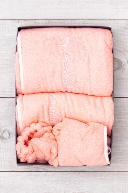 Подарунковий набір: рушники з мікрофібри (банний, лицевий) та аксесуари для волосся Носи своє Універсальний Персиковий (p-18