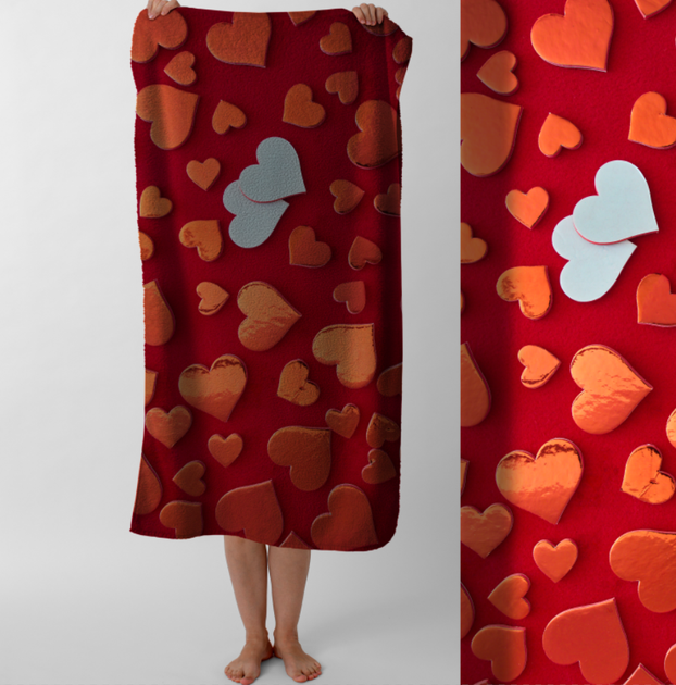 Рушник Червоні серця сердечки валентинка 1 банний пляжний 70х150 см