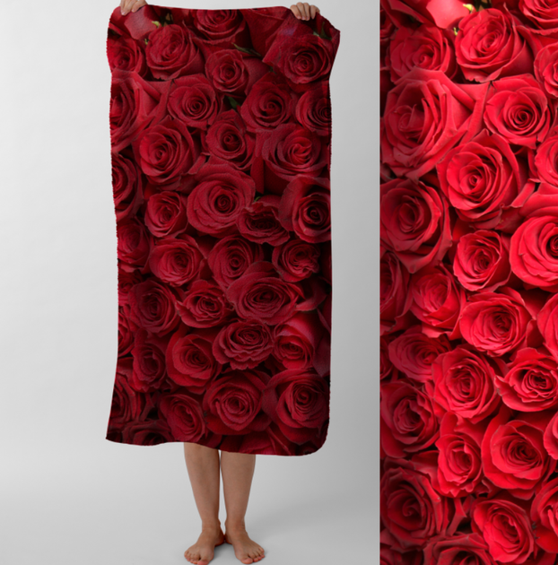 Рушник З червоними трояндами квіти букет банний пляжний 70х150 см