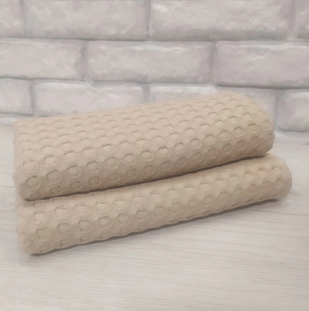 Набір 2 шт рушник вафельний, комплект для ванної кімнати, лазні, сауни, басейну, бані 110х65 см, капучіно (5743-2110)