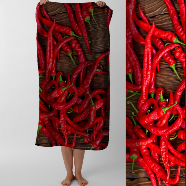 Рушник Червоні перці чилі банний пляжний 70х150 см