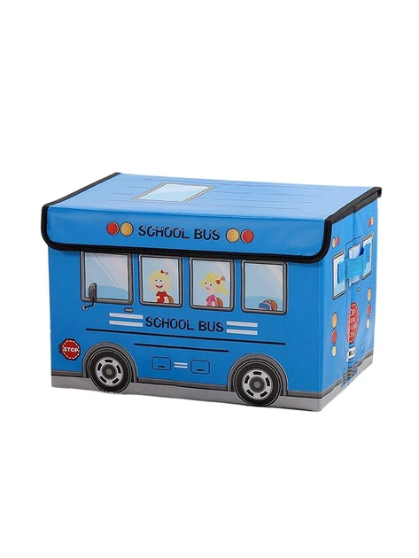 Органайзер для зберігання речей з кришкою у вигляді шкільного автобуса з картону та флізеліну складаний 25х38х25 см синій (C