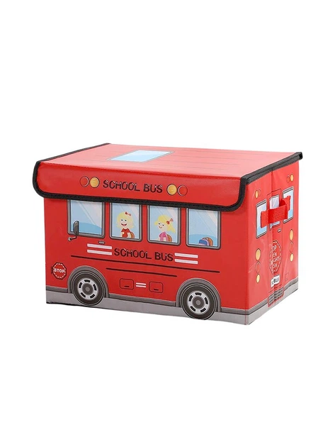 Органайзер для зберігання речей з кришкою у вигляді шкільного автобуса з картону та флізеліну складаний 25х38х25 см червоний