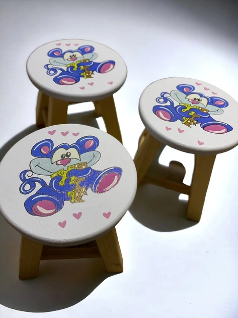 Стілець дерев'яний дитячий Табурет дитячий Ручної роботи "Мікімаус" 25x25x24 см.