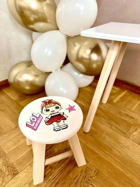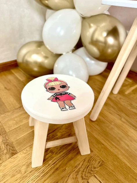 Стілець дерев'яний дитячий Табурет дитячий Ручної роботи "Кукла Лол" 25x25x24 см.