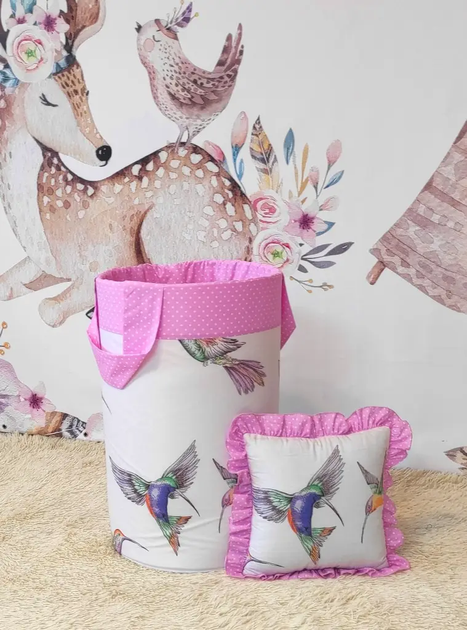 Кошик для іграшок Колібрі 60х35 см з якісної бавовни та поролонової вставки кругла