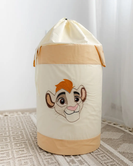 Кошик для іграшок Король Лев із затяжкою з якісної бавовни та поролонової вставки 60х35 см кругла