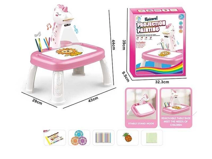 Столик з проектором YM 2219 "Єдиноріг", підсвічування, мелодія, проектор, 3 диски з картинками,