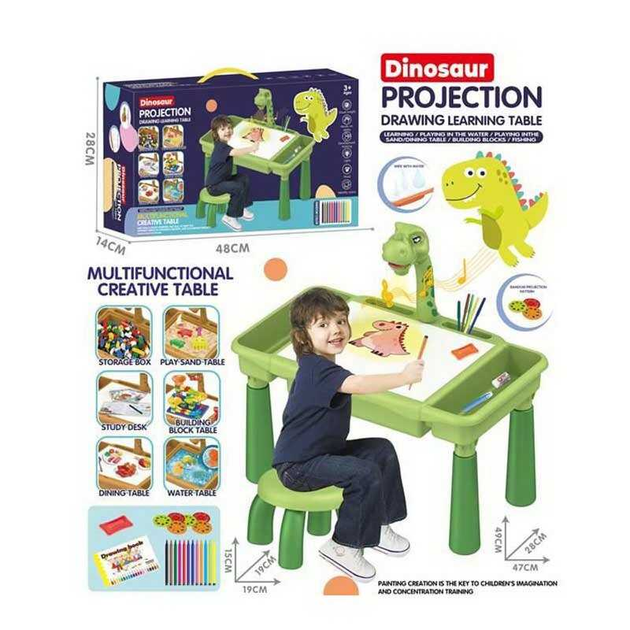 Столик з проєктором J 9001 3 диски, багаторазове малювання, фломастери, конструктор, гра з кулькою, альбом, в коробці