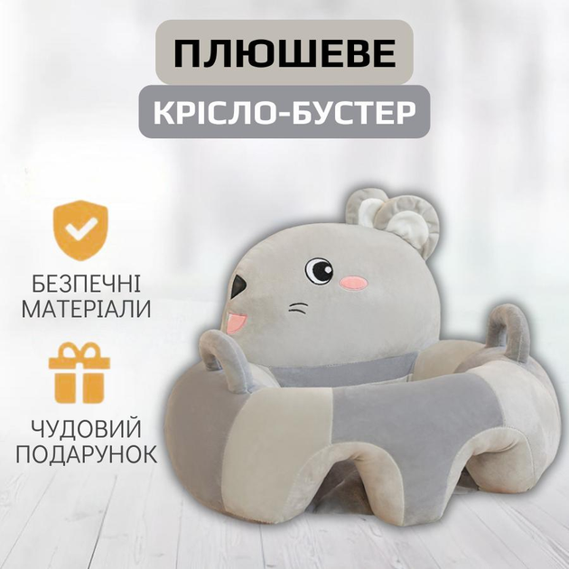 Дитяче плюшеве сидіння-бустер у вигляді тваринки м'яке крісло з бортиками мишеня сірий (280045М)