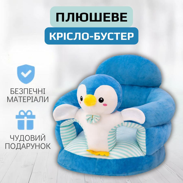 Дитяче плюшеве сидіння-бустер у вигляді тваринки м'яке крісло з бортиками пінгвін блакитний (280039М)