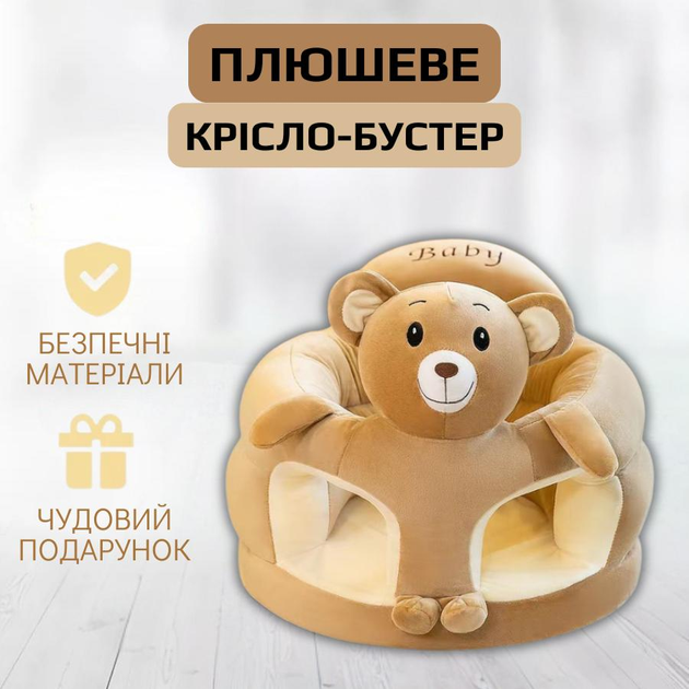 Дитяче плюшеве сидіння-бустер у вигляді тваринки м'яке крісло з бортиками ведмедик бежевий (280037М)