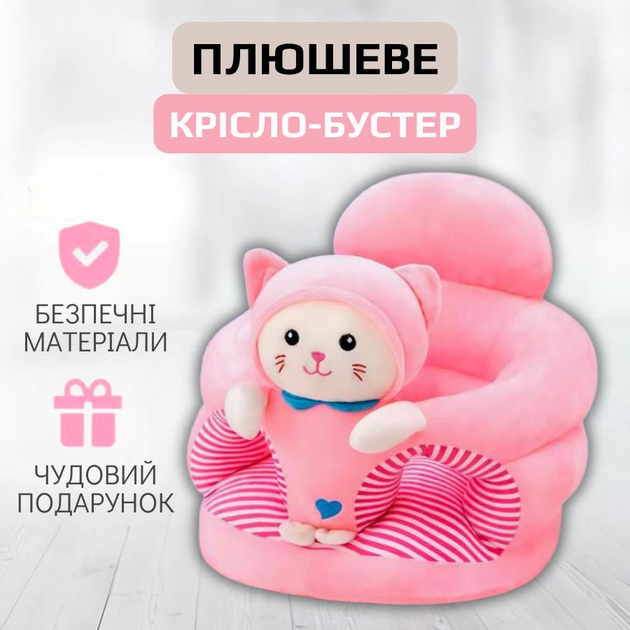 Дитяче плюшеве сидіння-бустер у вигляді тваринки м'яке крісло з бортиками котик світло-рожевий (280041М)