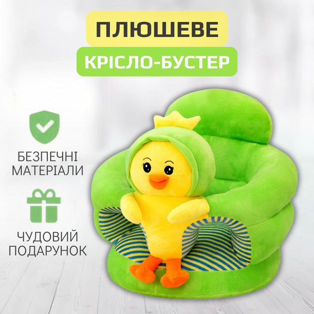 Дитяче плюшеве сидіння-бустер у вигляді тваринки м'яке крісло з бортиками курча салатовий (280042М)