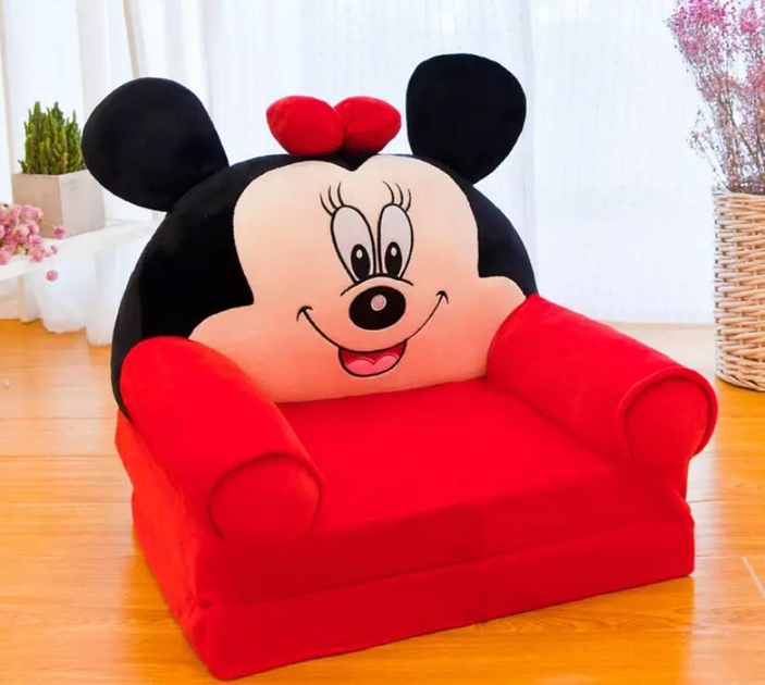 М'яке дитяче крісло плюшеве двохсекційне Міккі Маус Червоний з бантиком, безкаркасне м'яке крісло-диван для дітей у кімнату