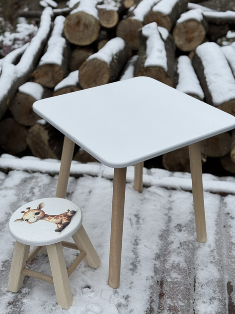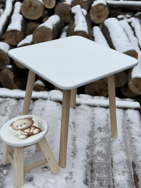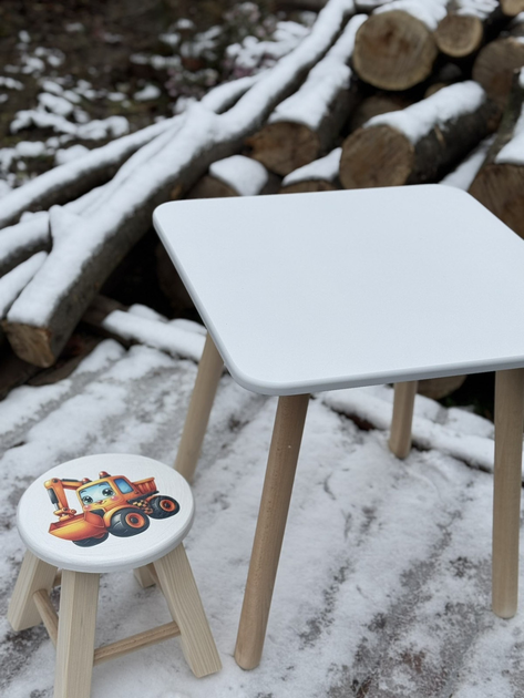 Дитячий дерев'яний столик 50x50 см. та стільчик 25x25x24 см. для ігор, універсальний набір меблів для дитини №3