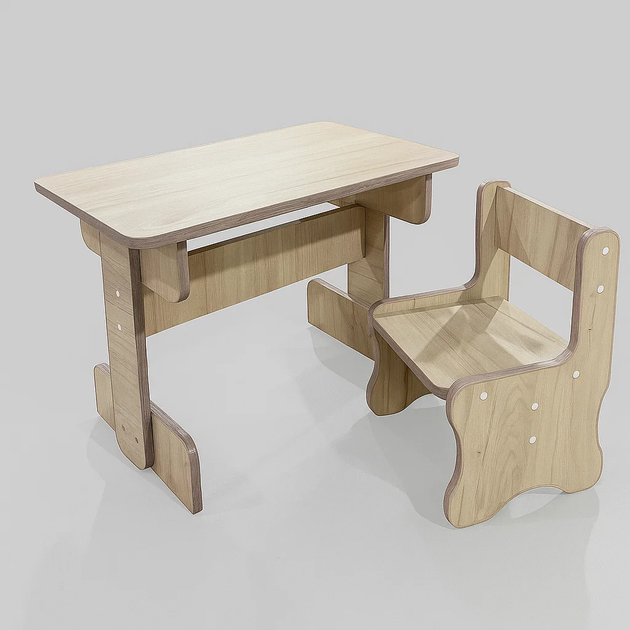 Дитячий дерев'яний столик 51x55 см. та стільчик 25x25x24 см. для ігор, універсальний набір меблів для дитини №7