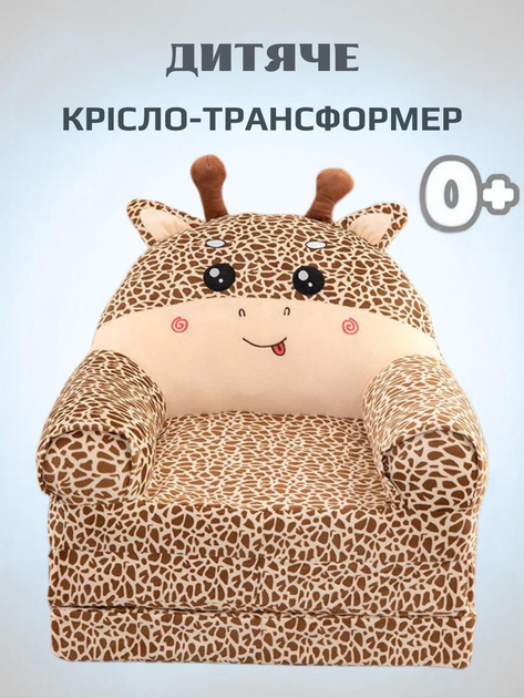 Плюшеве розкладне крісло-ліжко для дітей жирафа диванчик трансформер 2 в 1 бежево-коричневий (280055М)