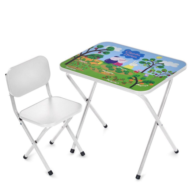 Дитячий складний столик M 5963-1 "Свинка Пеппа" зі стільчиком, овочі-фрукти