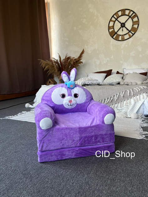 М'яке дитяче крісло іграшка плюшеве Зайчик 60 см, м'яке крісло-диван для дівчинки, Фіолетовий