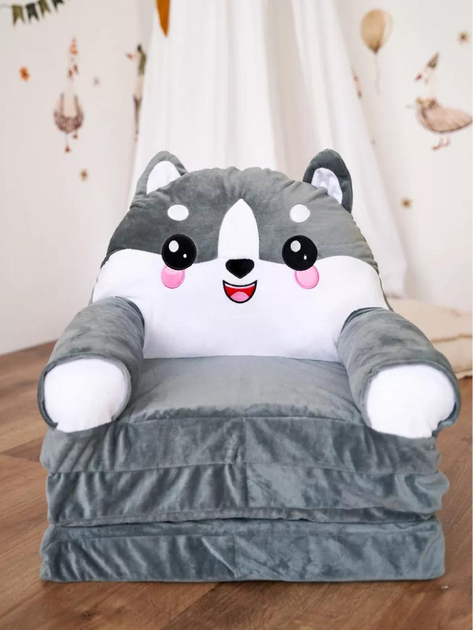М'яке дитяче крісло трансформер плюшевий диванчик для дітей хаски сірий (280023)