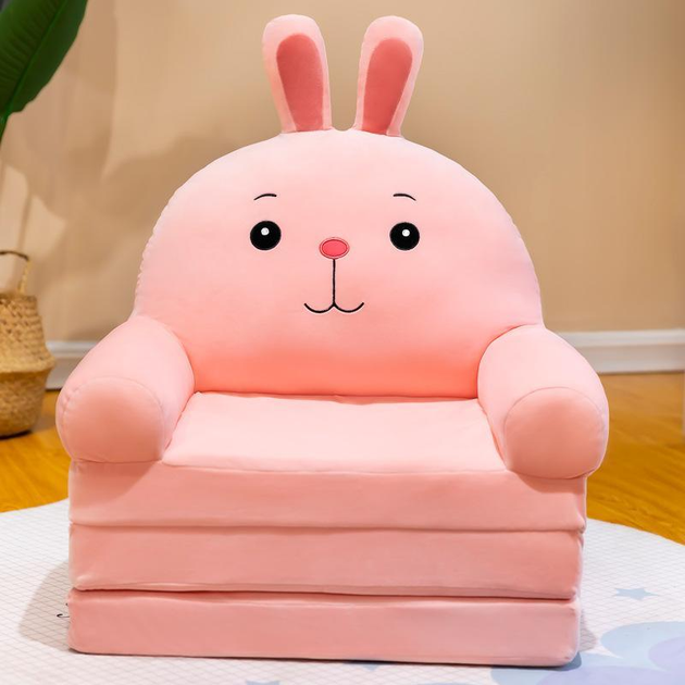 М'яке дитяче крісло трансформер плюшевий диванчик кролик для дітей зайчик рожевий (280022)