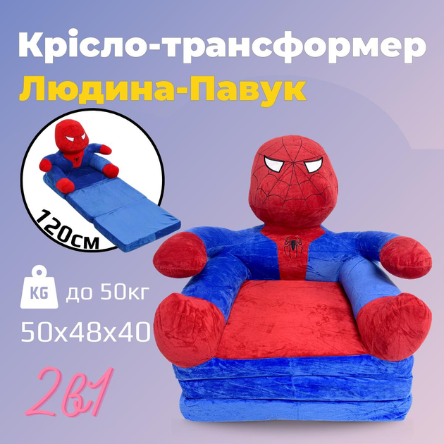 Плюшеве розкладне крісло-ліжко для дітей людина павук диванчик трансформер 2 в 1 для хлопчиків синій (280004М)